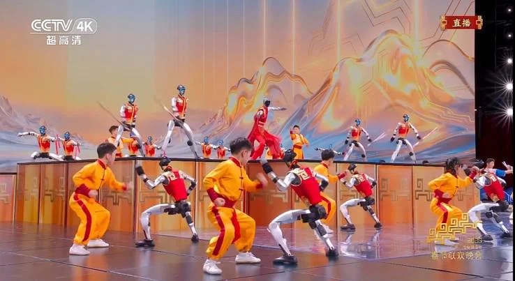 “过年好!”2月16日晚8时,中央广播电视总台《2026年春节联欢晚会》正式开演,除了演艺明星之外,机器人也成了春晚的“主力演员”。今年,松延动力、宇树科技、魔法原子和银河通用四家具身智能企业登上春晚舞台,带来小品、歌曲、武术和微电影等多种表演形式。去年,由张艺谋执导的《秧BOT》,让宇树机器人成为全民讨论的明星。今年,宇树机器人携手河南塔沟武术学校带来“续集”《武BOT》,成为春晚最热血的一幕。