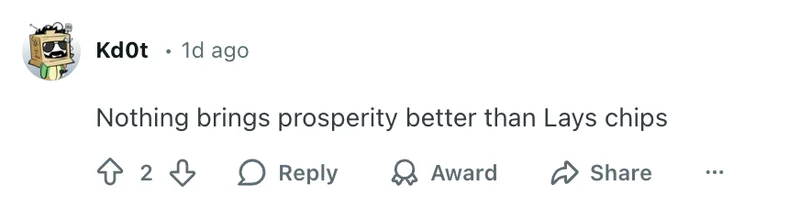 也有网友调侃:“没有什么比一盒乐事薯片更能带来‘新年兴旺’了。”