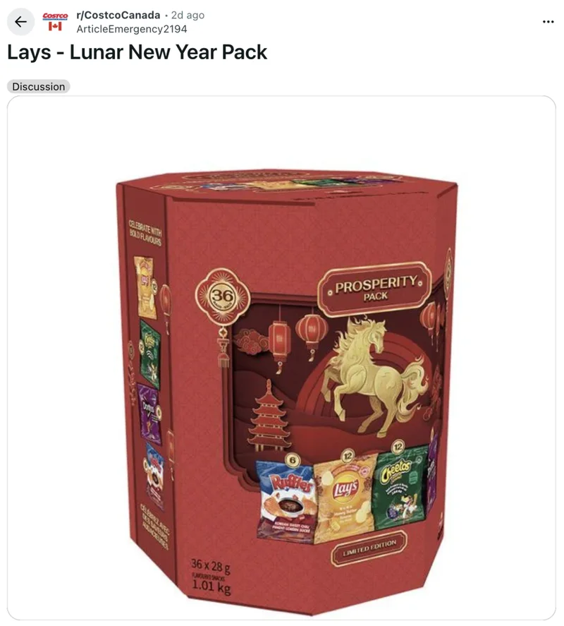 讨论源自 Reddit 社区 r/CostcoCanada,一位网友发帖称,他购买了 Costco 的乐事农历新年礼盒,结果打开后大吃一惊。