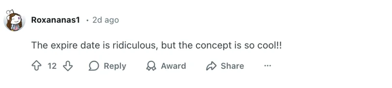 或许正如一位网友所说:“概念是挺酷的,但过期时间真的太离谱了。”