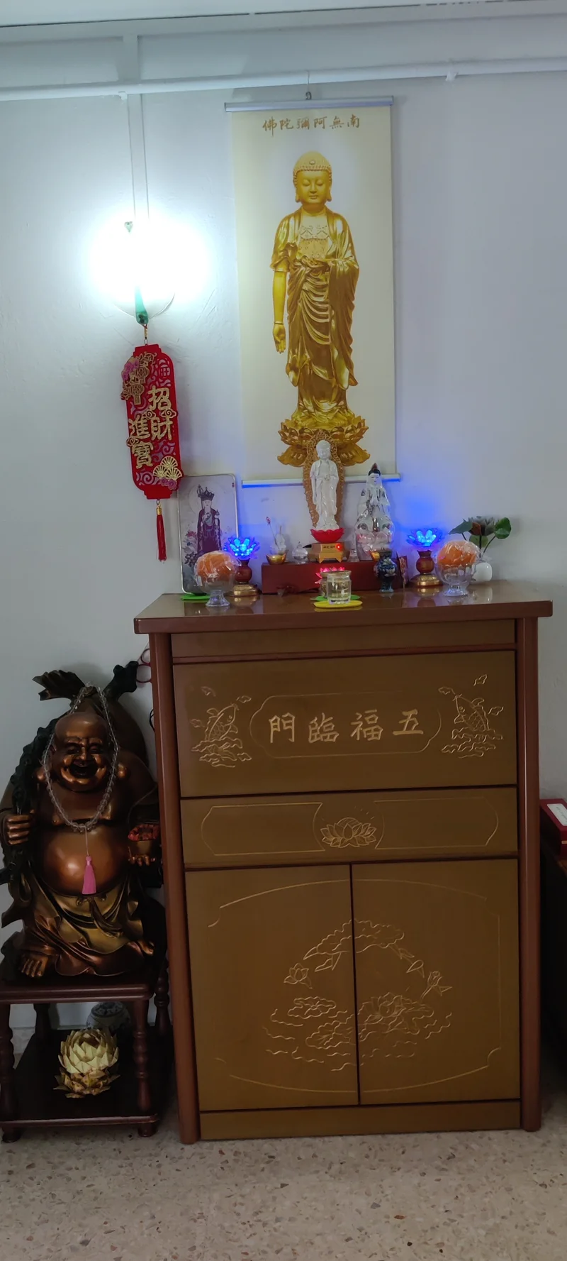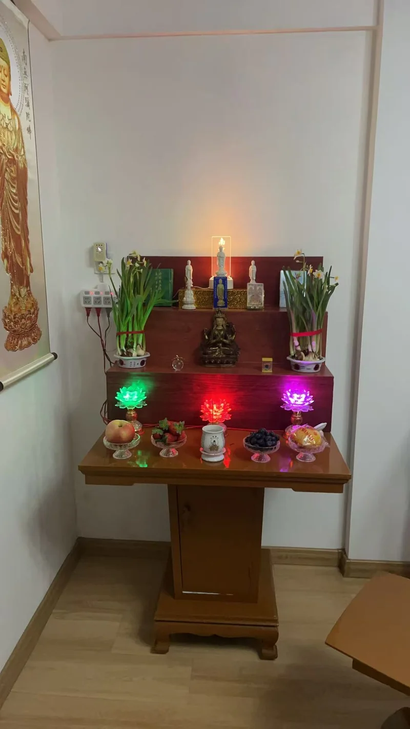 除夕之夜过了12点,已是新年初一, 先给佛上香拜年。