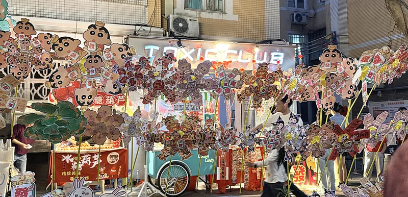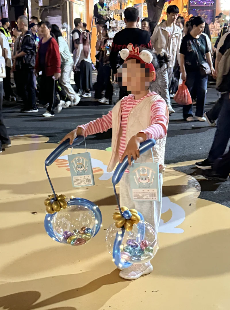 花市第二部分介绍-临时小摊档:广州的花市,不是每家都允许路边摆摊(广州人叫走鬼,过年过节就讲得好听些吧),好象越秀区西湖路花市,不要说路边摆摊了,游客连正摊都难以站得稳,就象蹩脚英文说的,People mountain people sea. 您不用走,人潮会推着您走,甚至偶尔有两脚悬空的感觉,黄埔区的花市人太少,也就那些出租的摊位支撑着。海珠区政府倒是人性化,从开张的那天到收摊,都允许路边摆摊,很多都是整家出动摆档,让大人和小孩有很好的发财互动,让孩子们也知道攒钱不容易。我女婿和女儿胸前也挂着二维码,卖玩具马收钱钱,不啰嗦了,上图。
