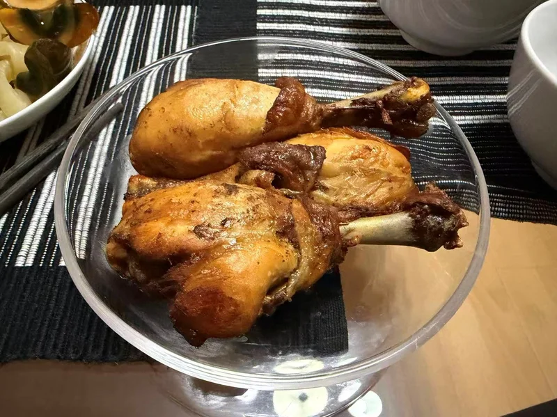 烤卤鸡腿,也是家中提前炖好的鸡腿,空气炸锅加工一下