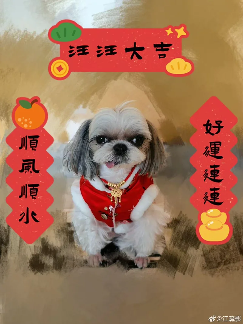 江疏影家的成员小狗狗,她特意给爱宠一个特写,还给狗狗戴了一条黄金长命锁,这狗过得比人都好啊!
