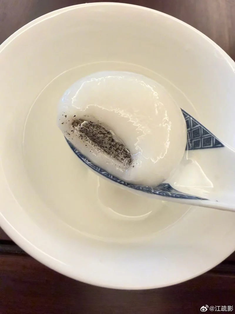 然后是过年少不了的汤圆,北方吃饺子,南方吃汤圆。上海人喜欢吃甜食,江疏影这汤圆构图拍的很不错。