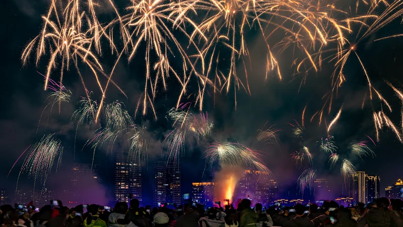 福州闽江大年初一烟花秀