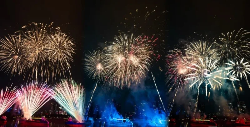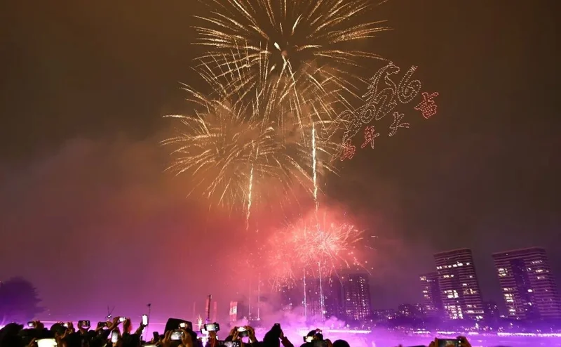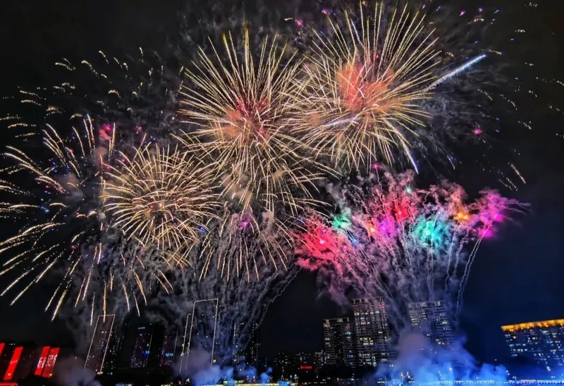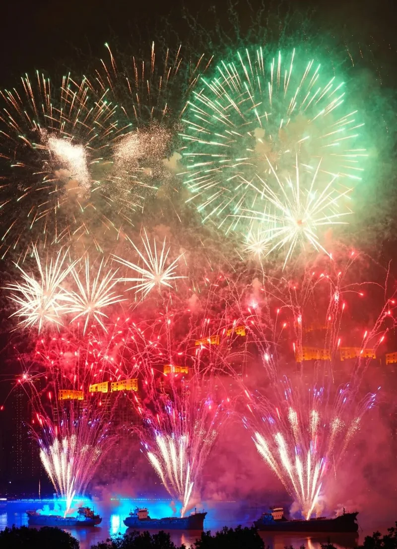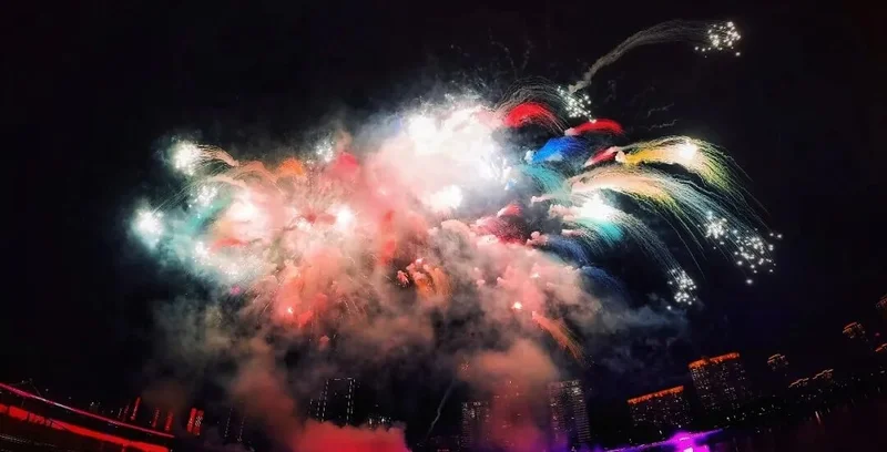 『七彩祥云』烟花以斑斓色彩铺满夜空