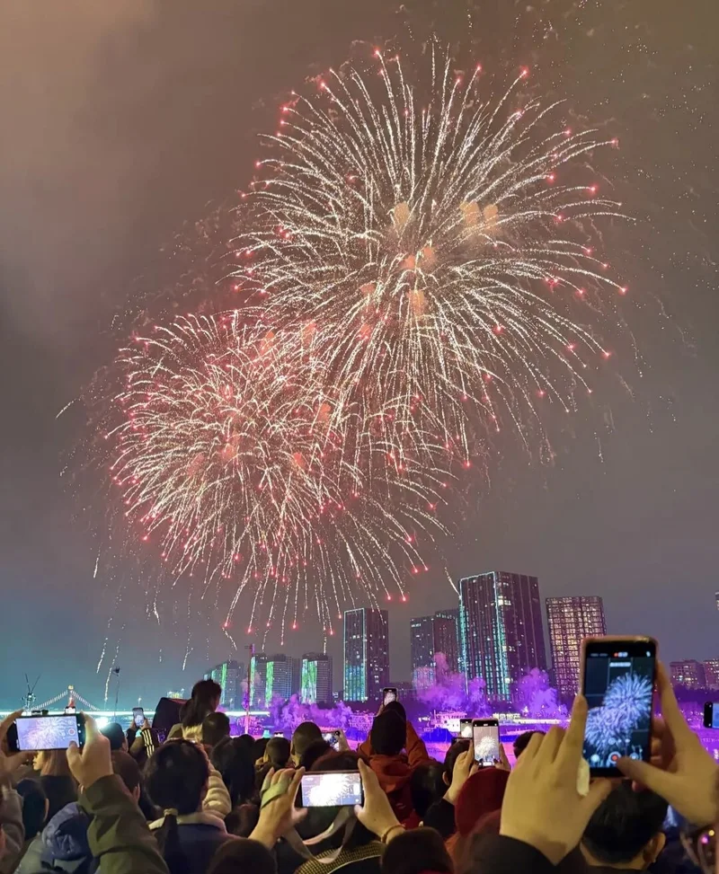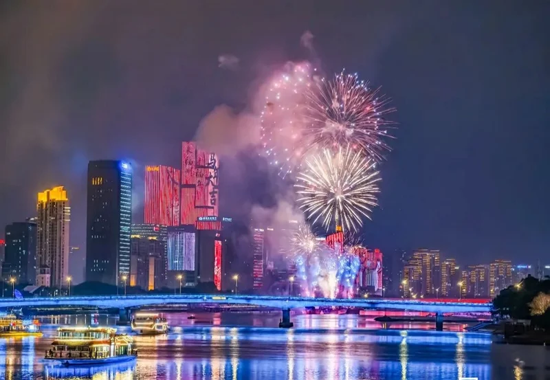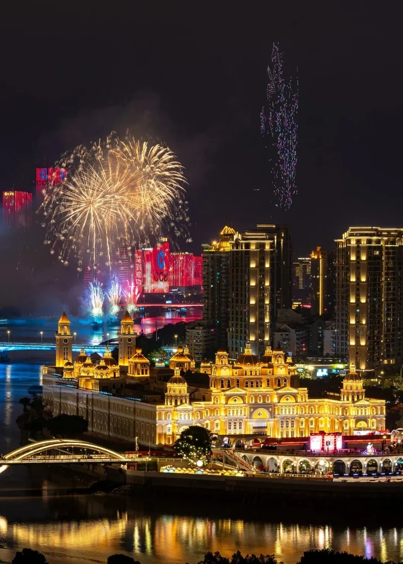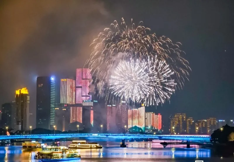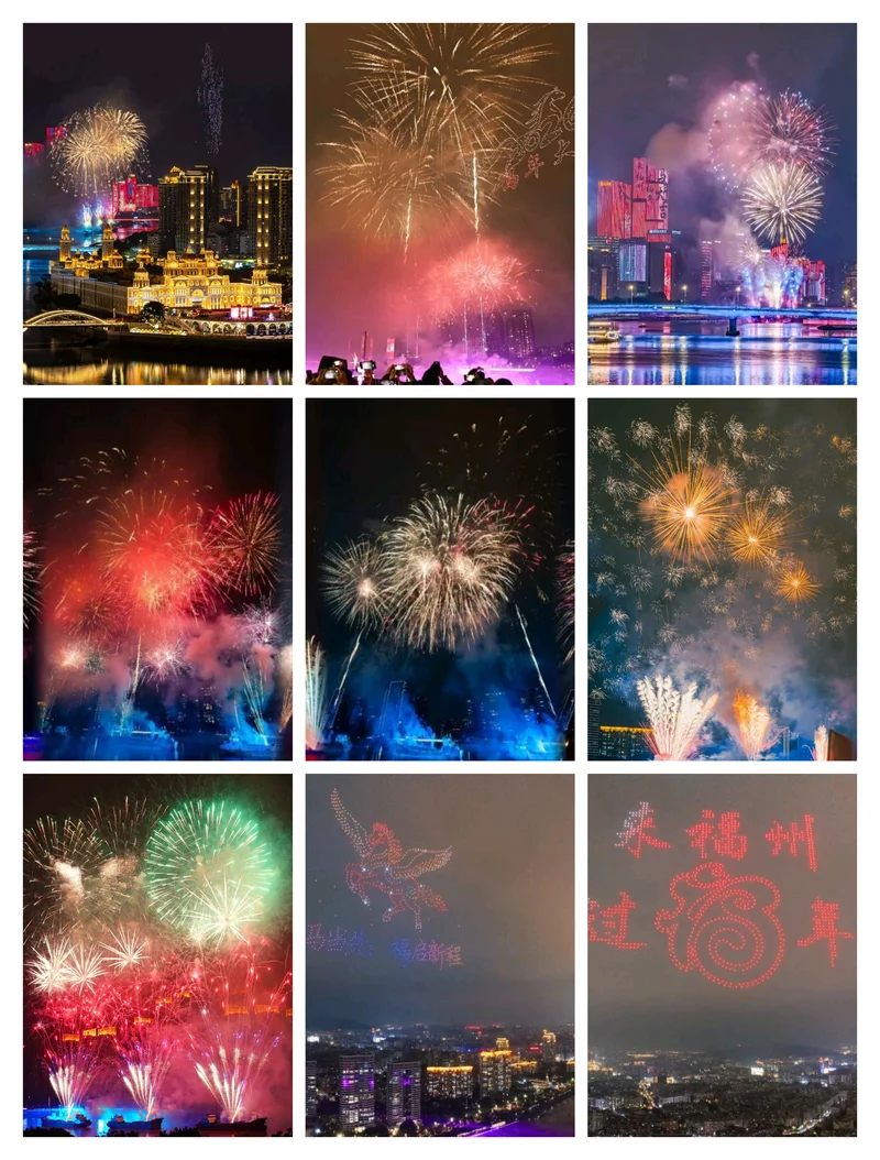 昨晚在闽都福州『闽江之心』中洲岛上演『来福州. 过福年』烟花无人机秀